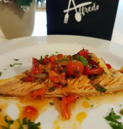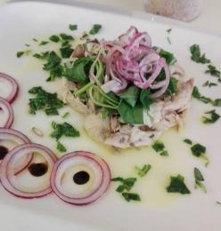 ‘-Filetto di sgombro con rucola e cipolla di tropea