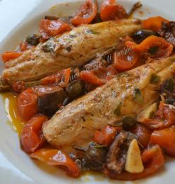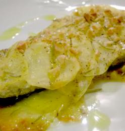 ‘-Filetto di spigola ai carciofi sul letto di patate