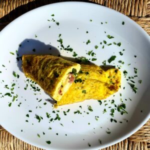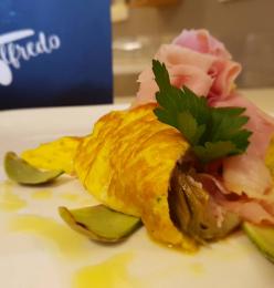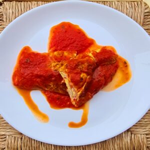 Muscisca di maiale con rucola. patate e agrumi del Gargano