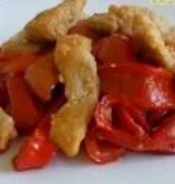 Straccetti di maiale con patate e peperoni