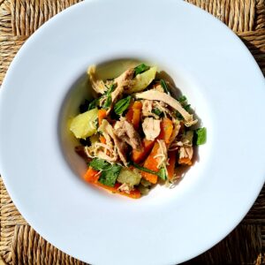 Straccetti di pollo con zucchine patate e curcuma
