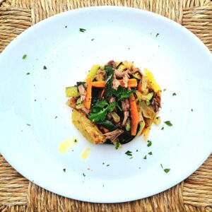 Straccetti di manzo con rucola e patate a limone