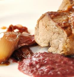 ‘-Filetto di maiale in crosta di noci in salsa di fragole