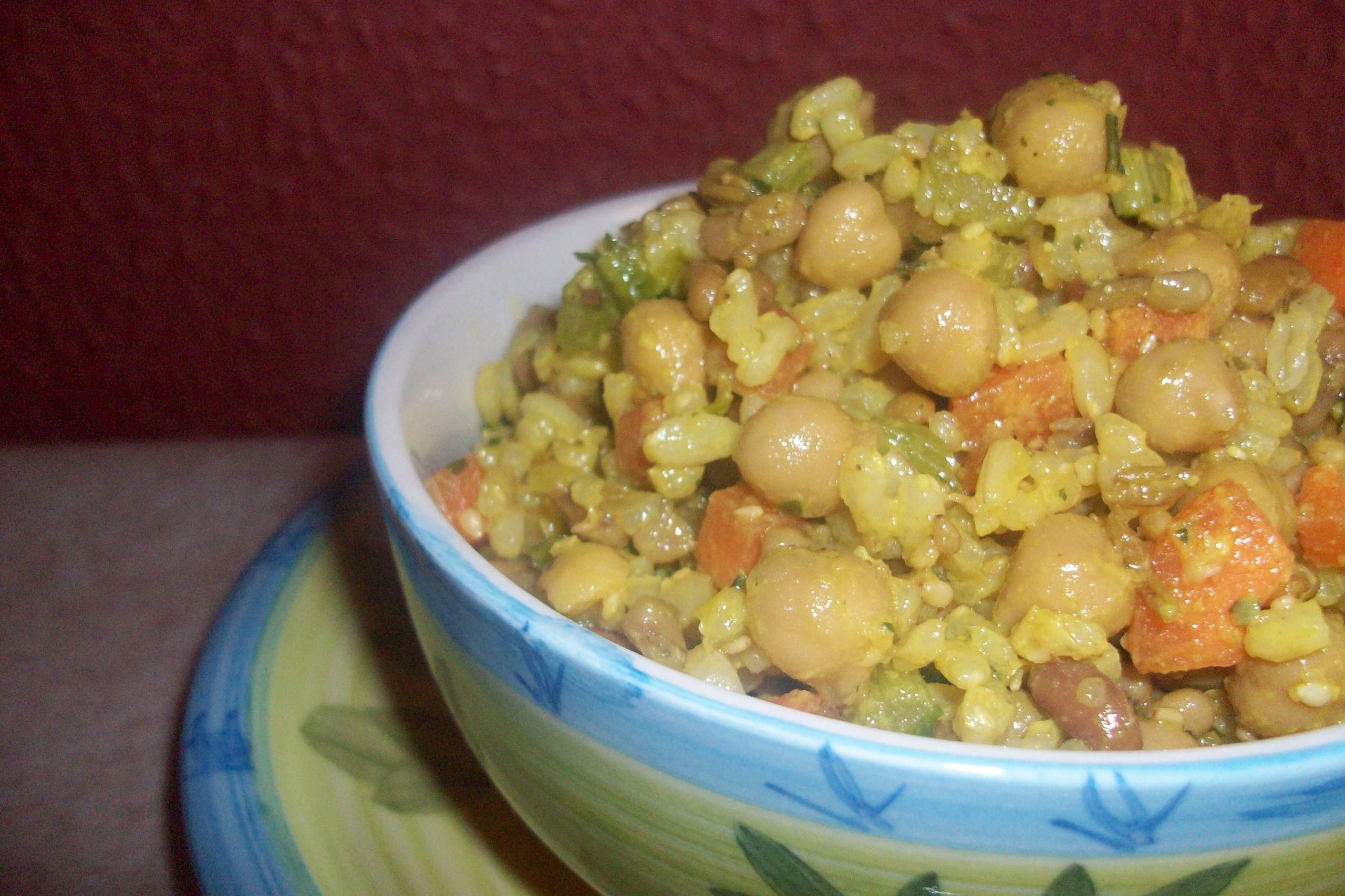 Riso integrale, legumi, brodo vegetale, sale e olio evo