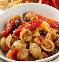 Orecchiette con pomodorini gratinati e olove (senza lattosio e per vegetariani)