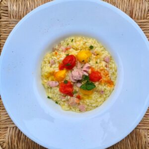 Filetto di orata piastrato al basilico con mille foglie di verdure