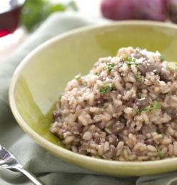 Risotto con polpa di manzo e vino rosso