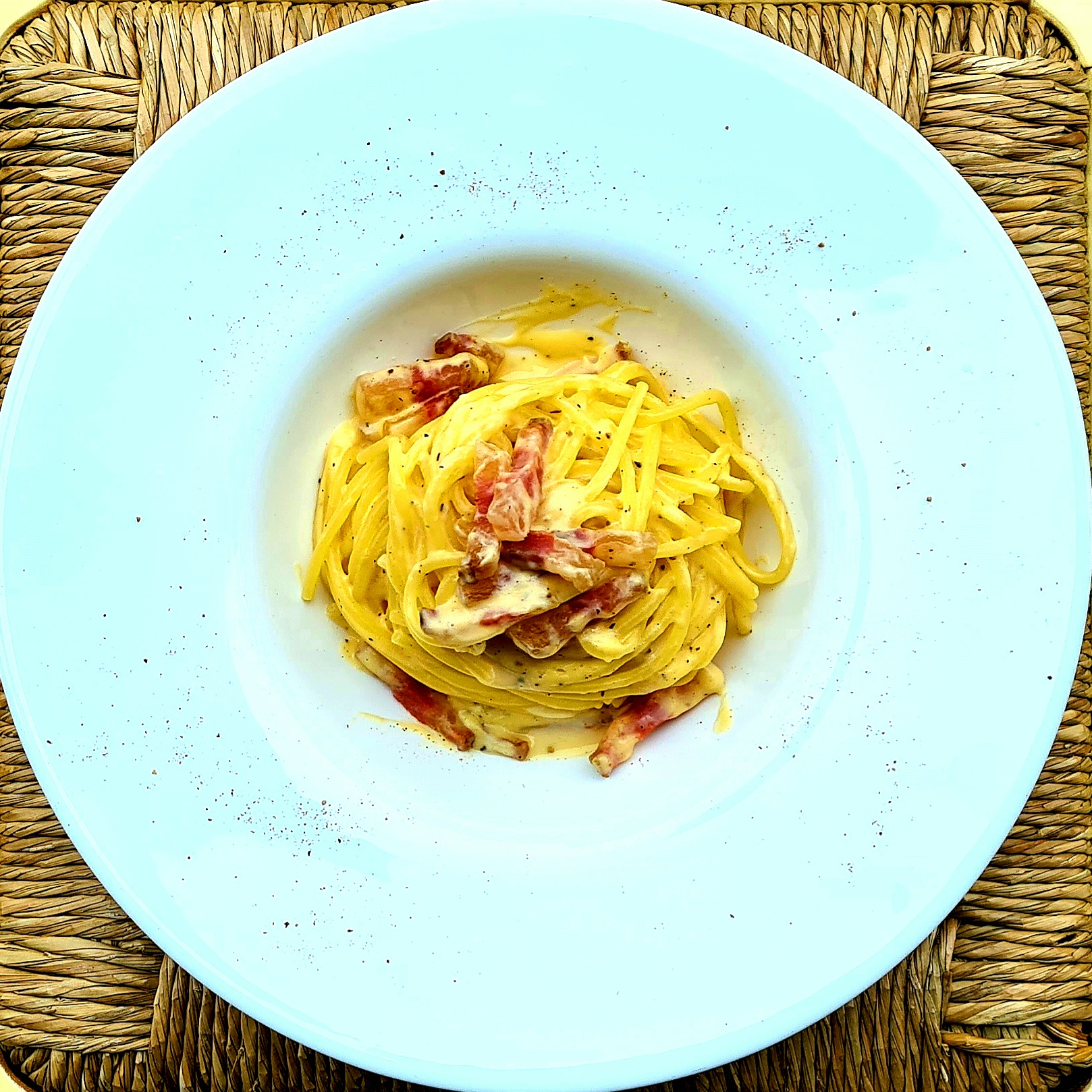 Tonnarelli alla carbonara8,50 € Lactose free Tonnarelli alla carbonara quantità Aggiungi al carrello COD: efb76cff97aa-1 Categoria: Primi Piatti Tag: Senza lattosio Descrizione Pasta fresca, uova pecorino, guanciale e pepe Prodotti correlati Tonnarello allo scoglio 9,00 € Aggiungi al carrello Papardelle con frutti di mare 9,00 € Aggiungi al carrello Calamarata rigata allo scoglio 9,00 € Aggiungi al carrello Paccheri con rape e salsiccia 7,00 € Aggiungi al carrello