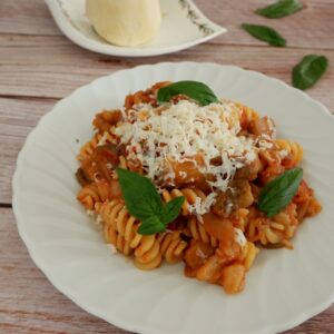 Pasta alla crudaiola “Basilico, mozzarella locale, pomodorini e Olio EVO Nostro”