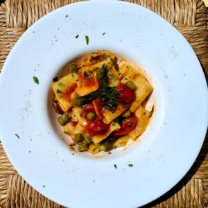 ✔ Calamarata con asparagi pomodorini e stracciatella