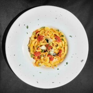 ✔ Spaghetti con crema di carota rossa e stracciatella affumicata